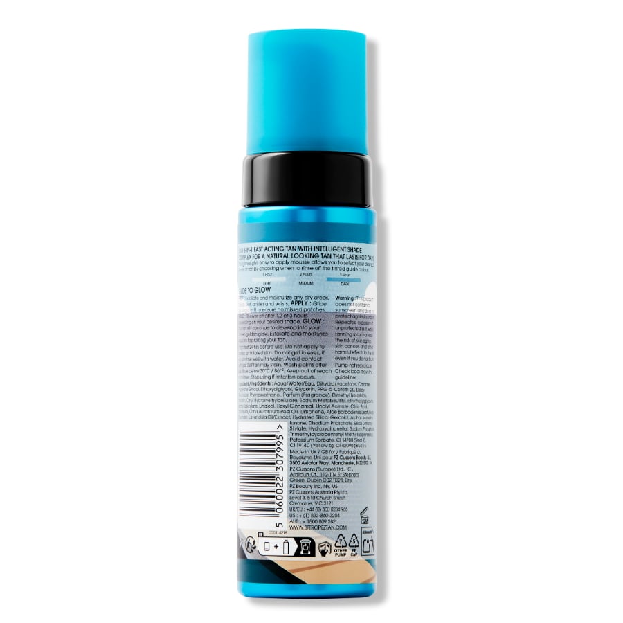 Control the depth of your tan with our most advanced and multi award-winning 3-in-1 Express tanning mousse. Choose from a Light, Medium or Dark Tan by applying with a Mitt and waiting just 1 hour before showering for a light tan, 2 hours for a medium golden bronze, or leave on for up to 3 hours for a deep, dark tan to suit your skin tone.